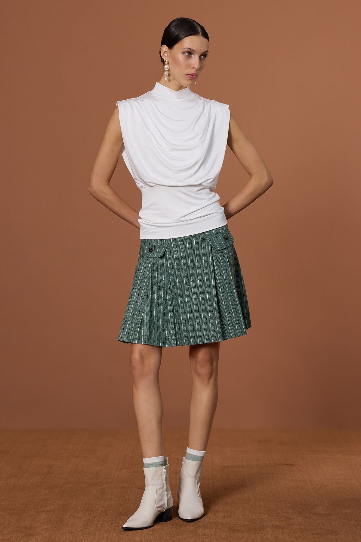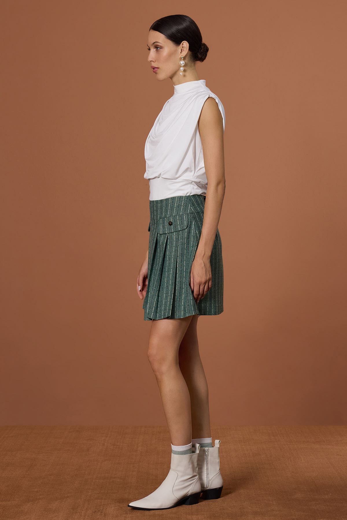 Pileli Çizgili Yeşil Etek