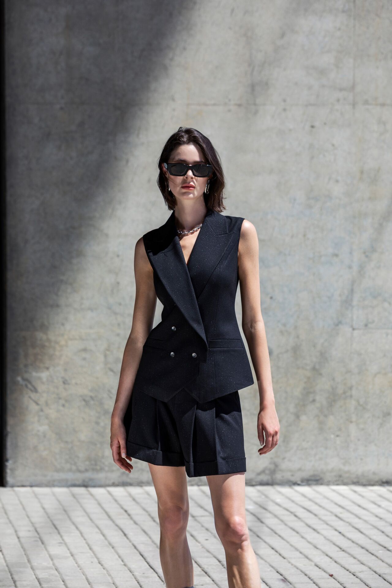 Pileli Gümüş Sim Detaylı Şort