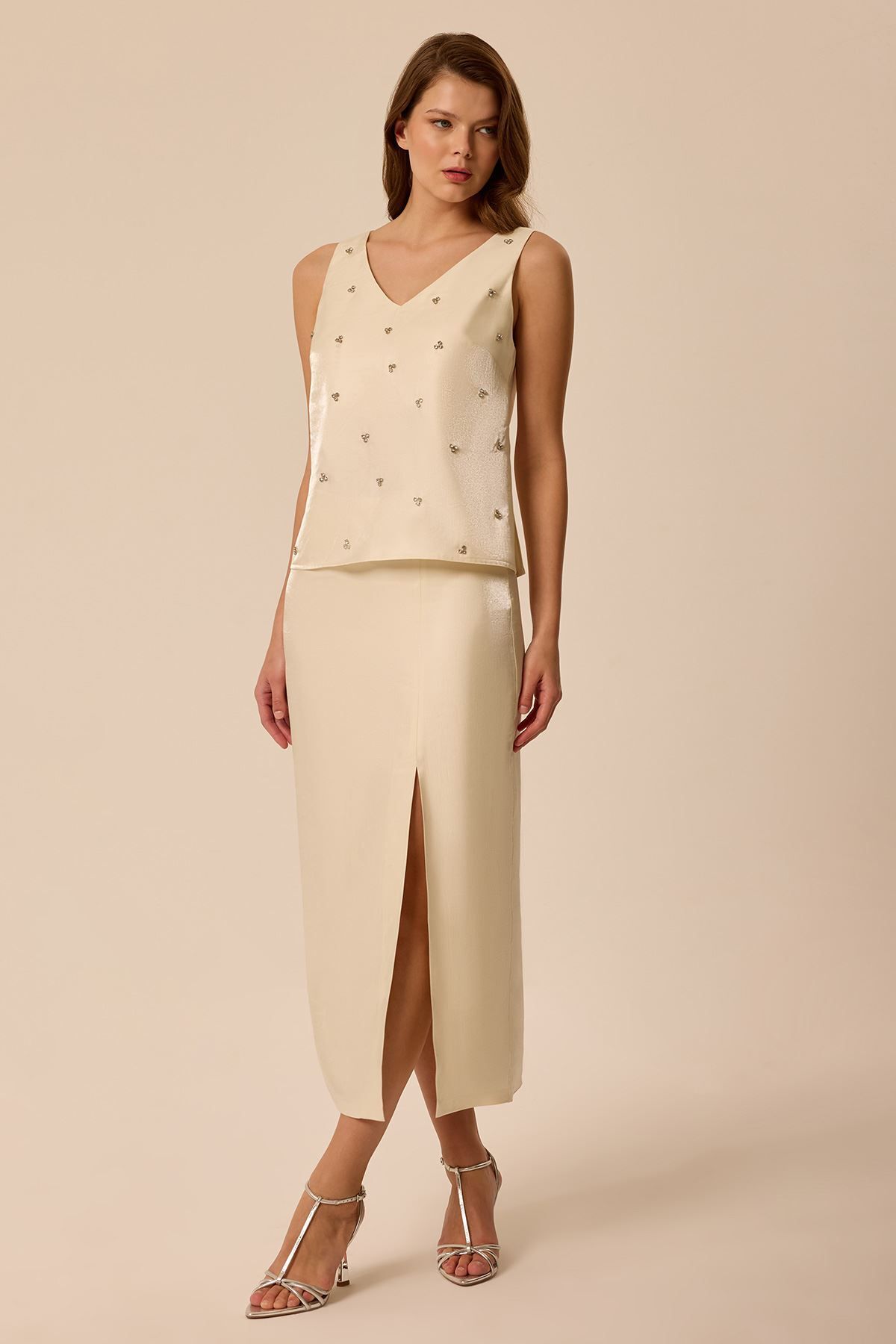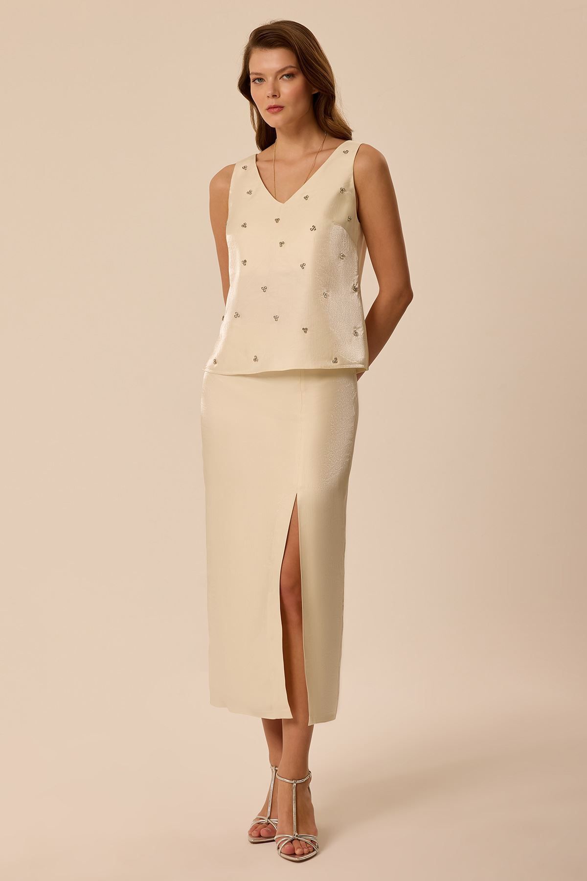 Yırtmaçlı Krem Etek